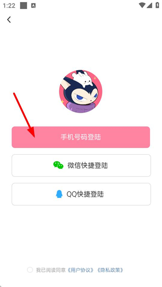 3、在登录方式选择页面,点击手机号码登陆选项,进入登录页面。