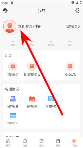 2、在我的页面,点击立即登录注册,进入登录界面。