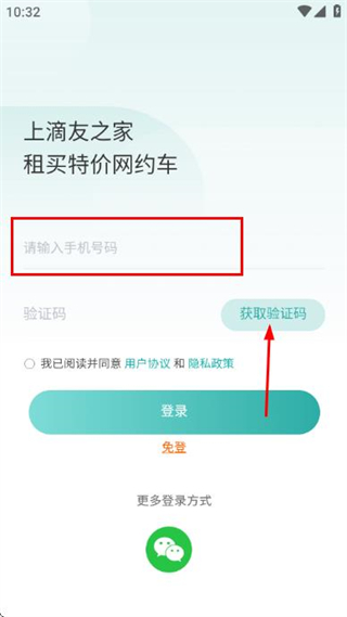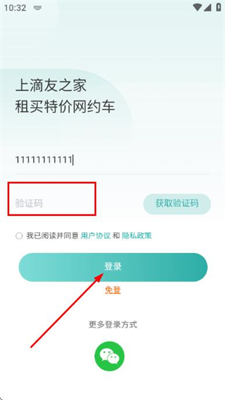 3、在登录页面填写验证码,勾选协议后,点击登录完成账号登录操作。