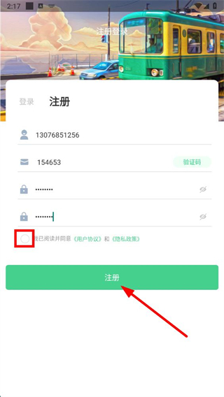 4、勾选我已阅读并同意用户协议和隐私政策,然后点击注册按钮,完成注册操作。