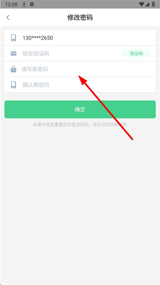 4、在修改密码页面,输入验证码、新密码,点击确定按钮,完成修改操作。