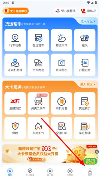 3、精彩发现,车辆管理、路况分享、发货配货、招聘找车、周边加油站、精彩活动,等待您的发现