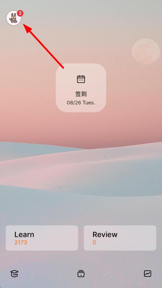 1、打开不背单词app,在主界面点击左上角的头像图标,进入个人相关页面。