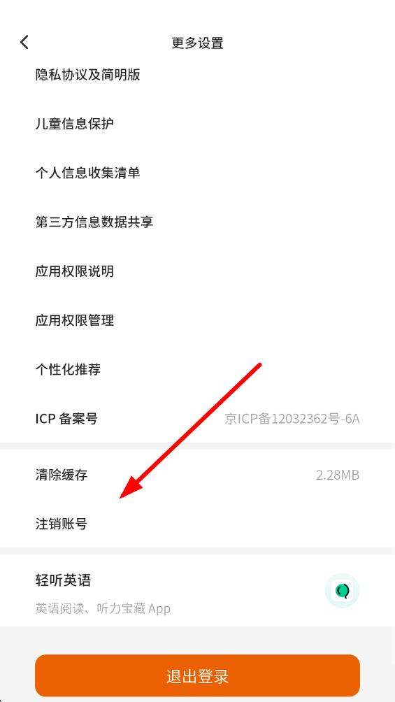 3、在更多设置页面,向下滑动找到注销账号选项,点击它,然后按照app给出的提示完成身份验证等操作,即可成功注销账号。