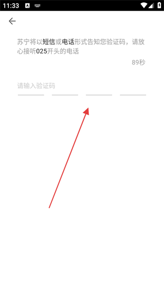 4、收到苏宁以短信或电话形式发送的验证码后,填入验证码,完成注册。