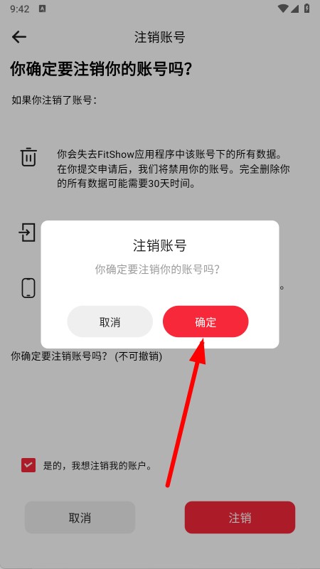 5、在弹出的确认框中,点击确定,完成账号注销操作。