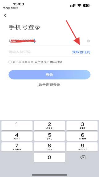 3、在手机号登录的页面内,输入手机号并点击获取验证码。