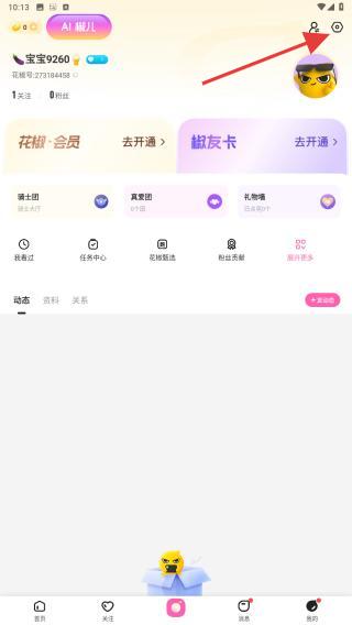 2、进入中心页面内,点击个人页面右上角的设置图标。