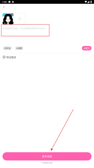 4、输入标题后,点击下方发布动态的按钮即可完成。