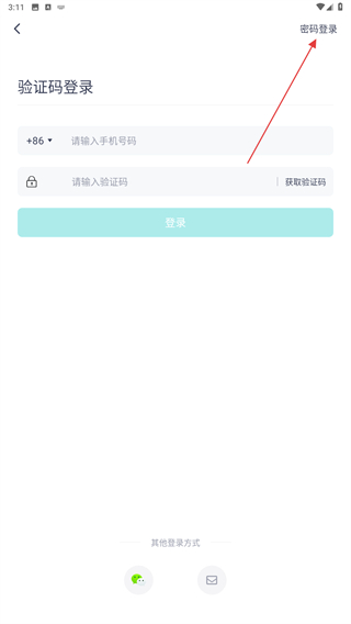 2、进入登录的页面内,点击右上角密码登录的按钮。