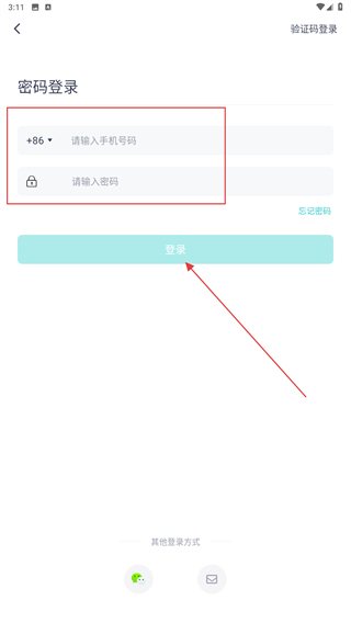 3、输入手机号码、密码后,再点击登录的按钮即可完成。