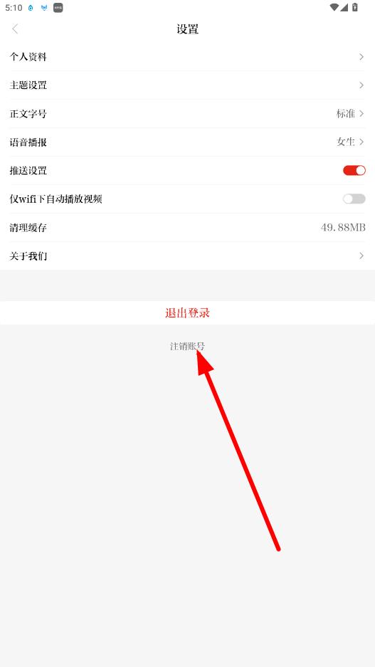 3、在设置界面里,找到注销账号选项并点击,进入注销相关流程页面。