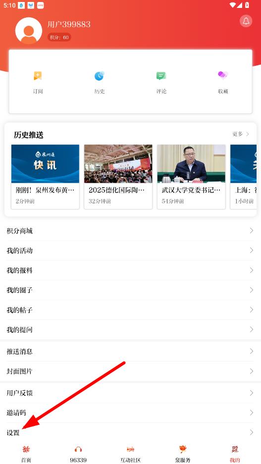 1、打开泉州通APP,进入首页后,点击页面底部右侧的我的选项,进入个人相关页面。