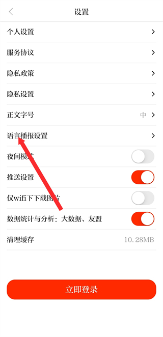 3、在设置的界面里,点击语音播报设置,进入语音播报参数调整页面。