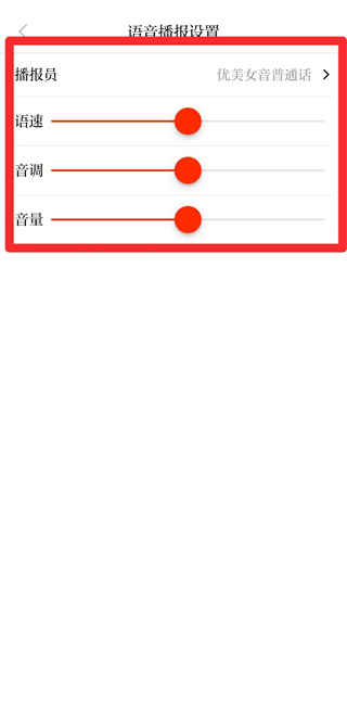 4、在页面可对播报员等进行个性化设置,调整完成后即可启用播报功能。