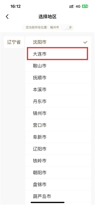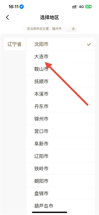 2、在选择地区页面列表中,找到想要切换的城市。