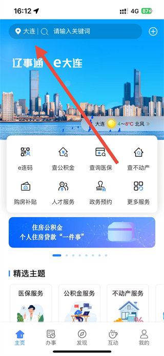 1、打开辽宁医保app,点击页面顶部的城市选择区域。