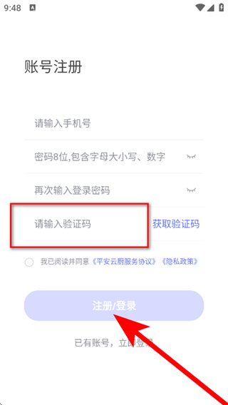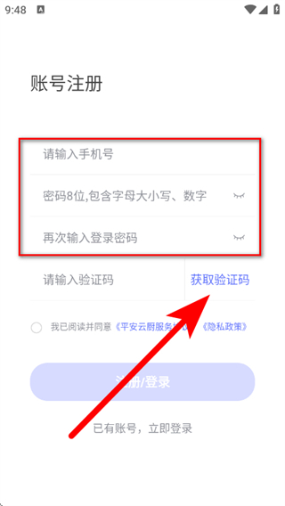 平安云厨智慧食堂app怎么注册账号