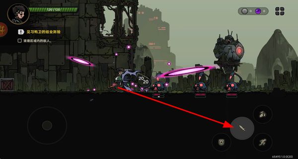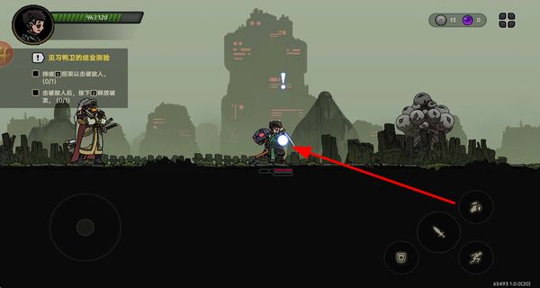 1、通过滑动摇杆控制角色在场景中移动,探索废墟区域,靠近目标地点或敌人。