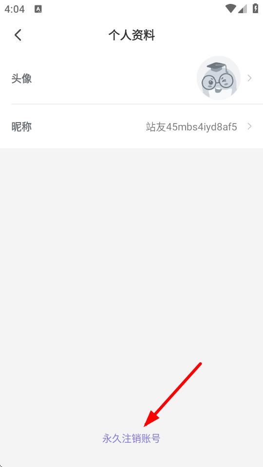 3、在个人资料界面,点击永久注销账号,进入注销账号页面。