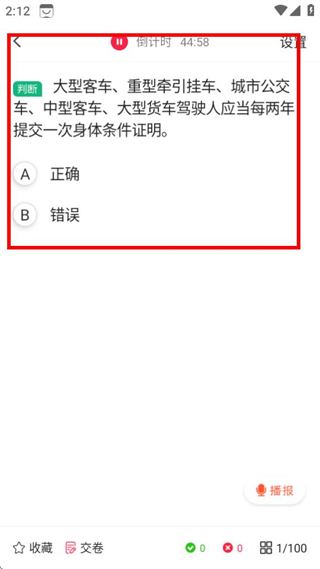 4、在模拟考试答题界面,可进行科目一题目作答,完成模拟考试。