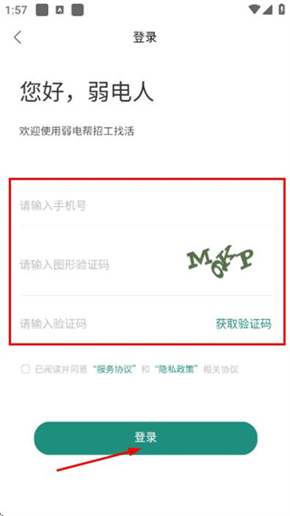 3、在登录页面填写手机号、图形验证码、验证码,勾选相关协议后点击登录完成账号登录操作。