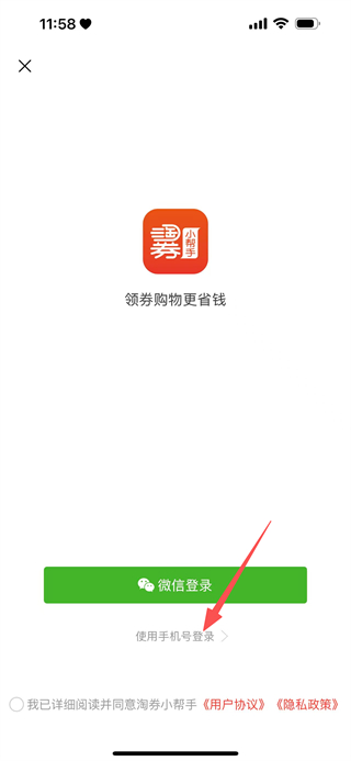 2、在登录界面,点击使用手机号登录,进入手机号登录相关页面。