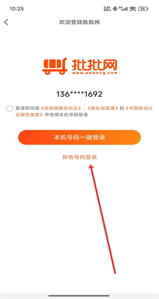 3、登录选择页面点击“其他号码登录”,进入登录/注册页面。