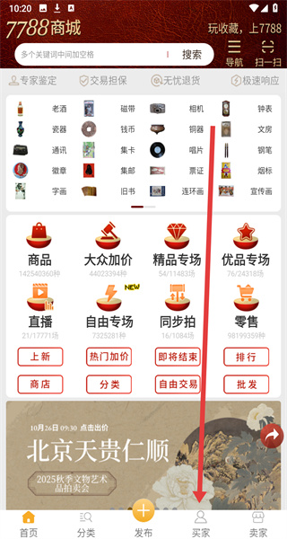 7788商城手机版是一款提供物品零售、拍卖以及批发等服务的移动客户端,本软件为消费者提供了海量商品资源,包括艺术品、二手物品以及数码家电等商品信息,方便你随时随地在线选购所需物品,欢迎用户下载使用!