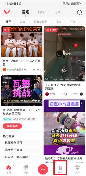 1、打开软件,在软件中我们点击下方的频道,点击【福利】进入到福利频道;