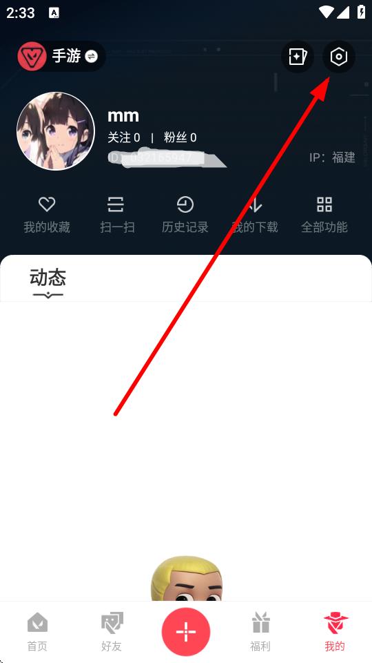 2、在个人界面右上角,点击设置图标进入设置页面。