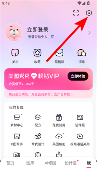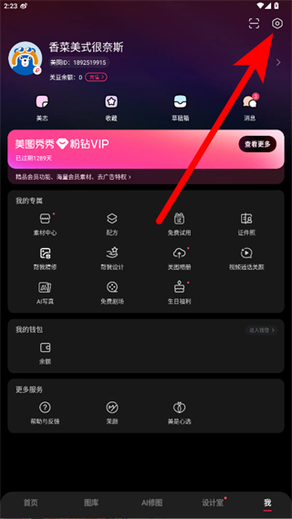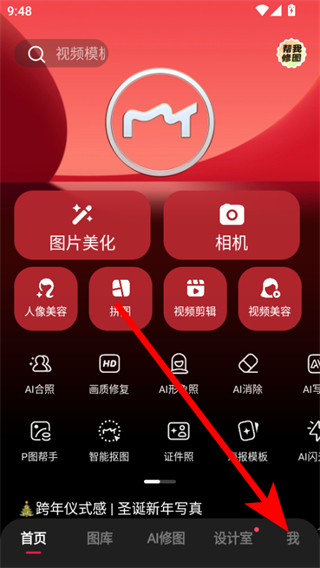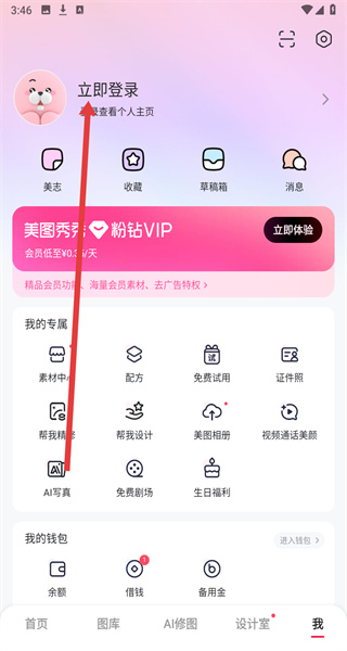 1、打开美图秀秀,点击底部导航栏的我选项,进入个人中心页面。