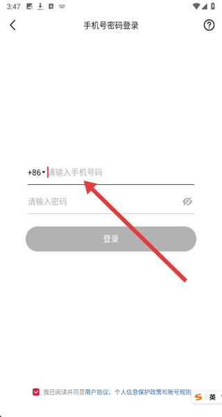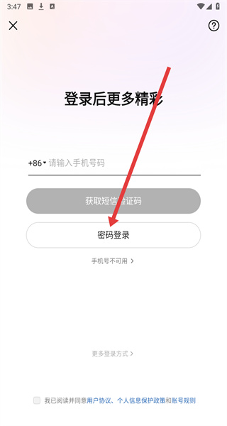 4、在切换为密码登录后,即可点击输入框依次填写手机号和密码信息,完成登录操作。