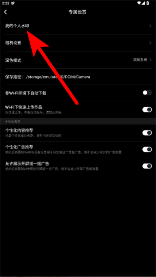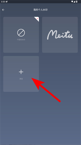 4、在专属设置页面点击我的个人水印,进入我的个人水印页面后点击添加,即可设置美图秀秀的个人水印。