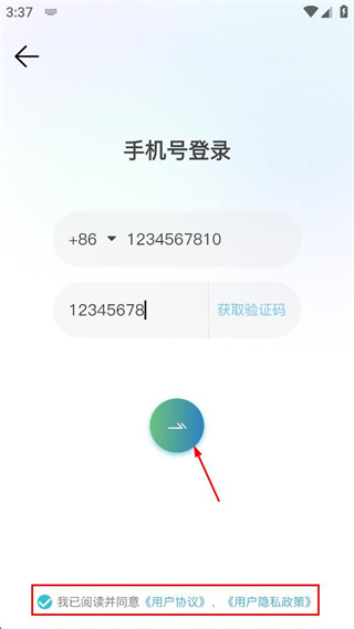 3、获取并填写验证码,勾选相关协议后点击登录按钮完成操作。