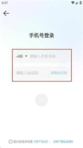 2、在手机号登录页面的对应输入框中,填写需要登录的手机号码。