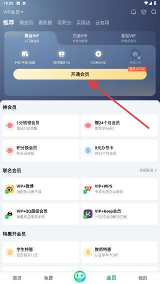 2、在会员的页面中,用户需点击开通会员的按钮。
