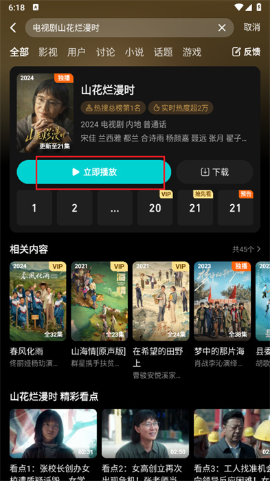 4、点击【立即播放】按钮,以开启电视剧的播放;