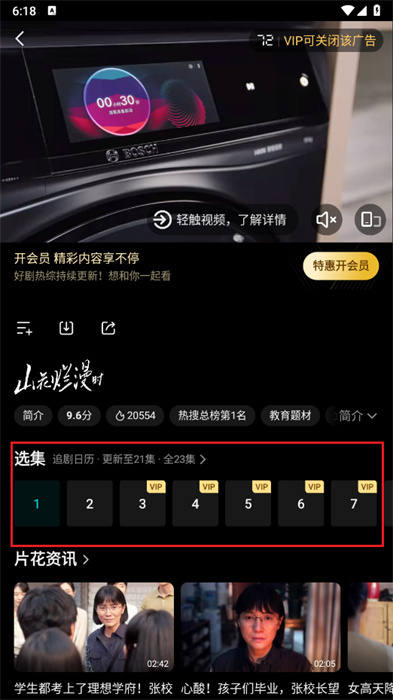 5、进入到视频内之后,可以点击下方的选集界面,以进行集数的选定。