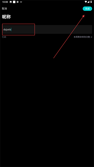 5、在输入框内输入新昵称后,再点击完成的按钮即可修改成功。