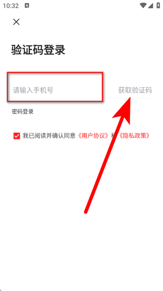 3、在验证码登录页面,输入手机号,点击获取验证码。