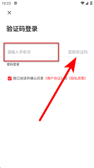 3、在验证码登录页面,输入手机号,点击获取验证码。