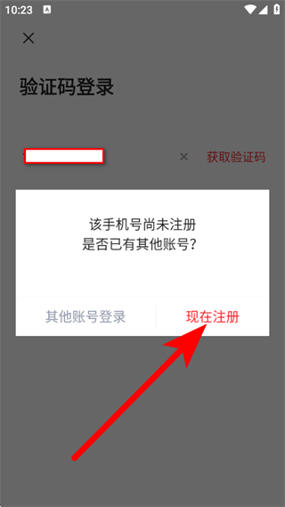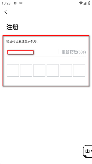 5、在注册页面,将收到的验证码填入对应输入框中,完成注册。