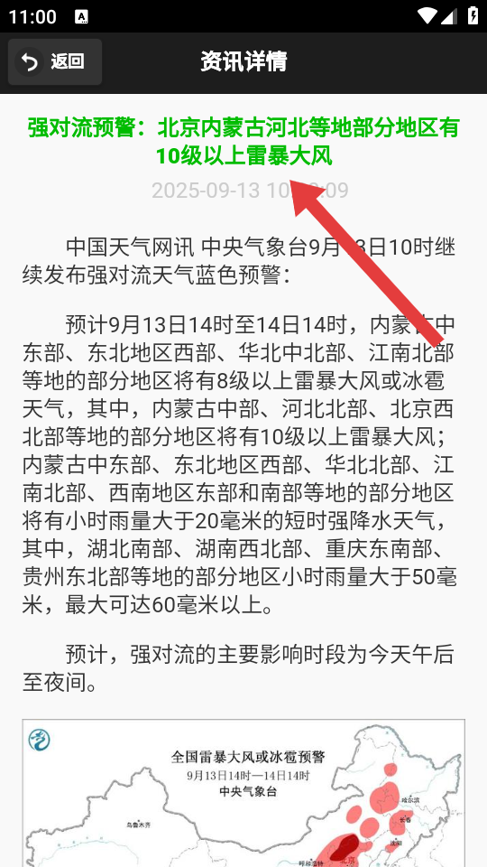 4、进入资讯详情的页面后,即可查看该天气资讯的具体内容。