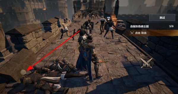 2、滑动摇杆移动,攻击指定敌人如灰色骑士团,战斗中注意观察剩余目标数量,逐步完成击杀任务。