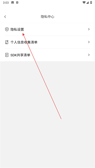 2、在设置界面里,选择隐私中心选项,进入隐私相关设置页面。