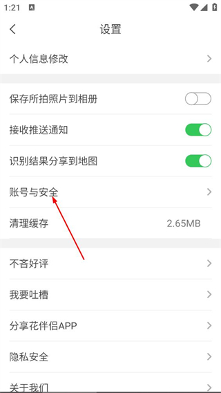 3、在设置页面,点击账号与安全,进入账号与安全页面。