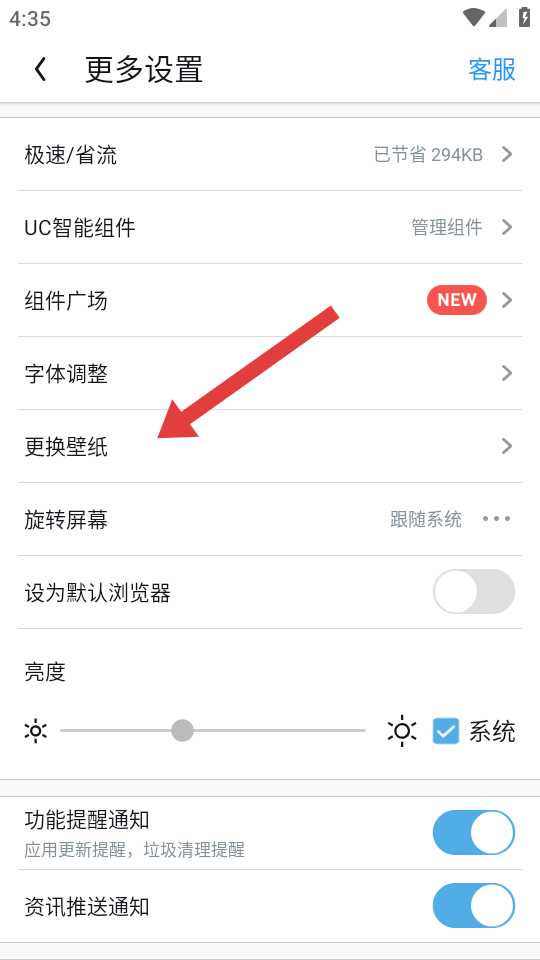 2、在更多设置的页面中,需要下滑找到并点击更换壁纸的选项,进入壁纸中心的界面。
