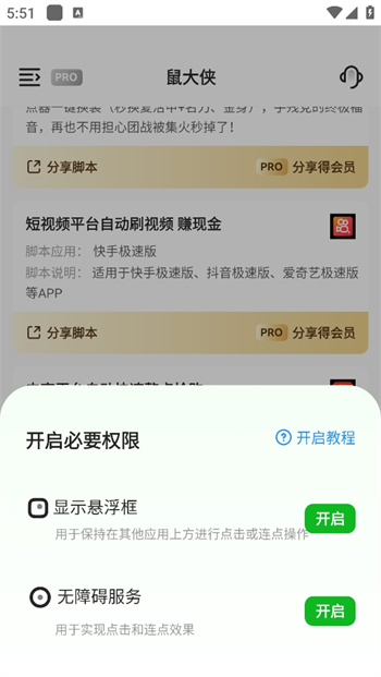4、完成权限授权后,返回鼠大侠主界面,即可看到功能面板弹出即可使用。