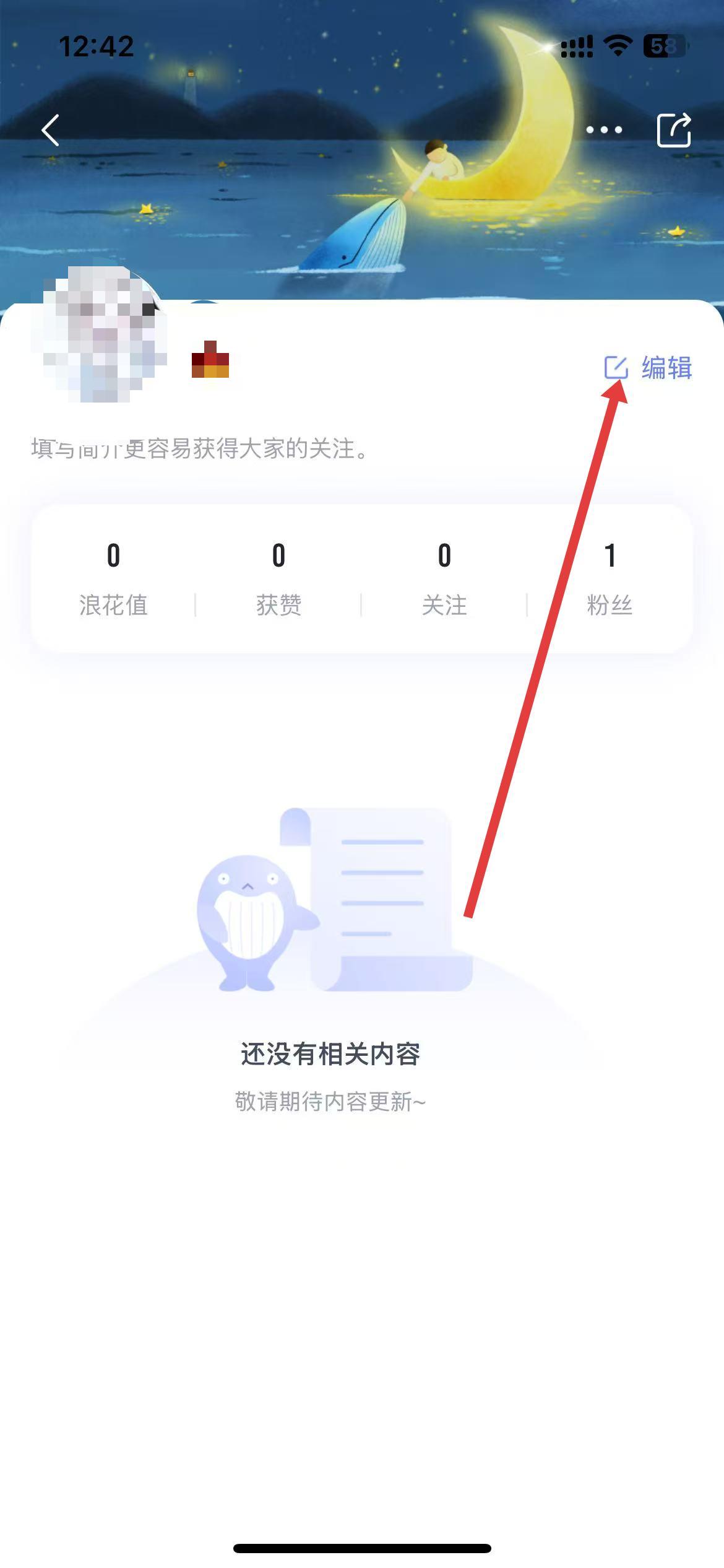 3、进入个人主页后,点击页面右上角的编辑按钮。